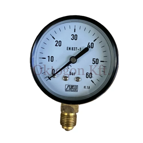 Bourdon-csöves manométer Típus: SUKU 4301 Névleges átmérő: 63 mm Mérés tartomány: 0-60 bar Csatlakozás: G 1/4", alsó Ház anyaga: Acél Csatlakozó anyaga: Réz Pontossági osztály: 1,6 (EN 837-1) Max. közeg hőmérséklet: 60°C Környezeti hőmérséklet: -40°C...+60°C |