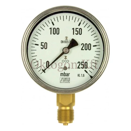MANOMÉTER M-100/R 0-250mbar réz 1/2" alsó csatlakozás, KO ház