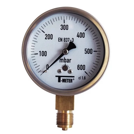 Rozsdamentes acél manométer | DN 100 | 0-400 mbar | 1/2" alsó csatlakozás