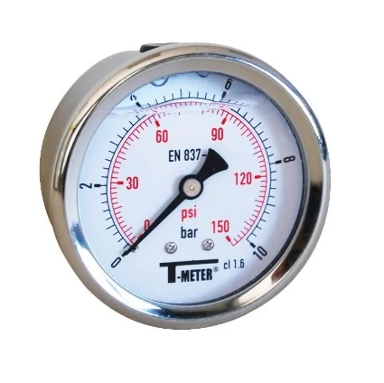 Rozsdamentes acél manométer glicerin töltéssel | DN 63 | 0-6 bar | 0-90 psi | 1/4" hátsó csatlakozás