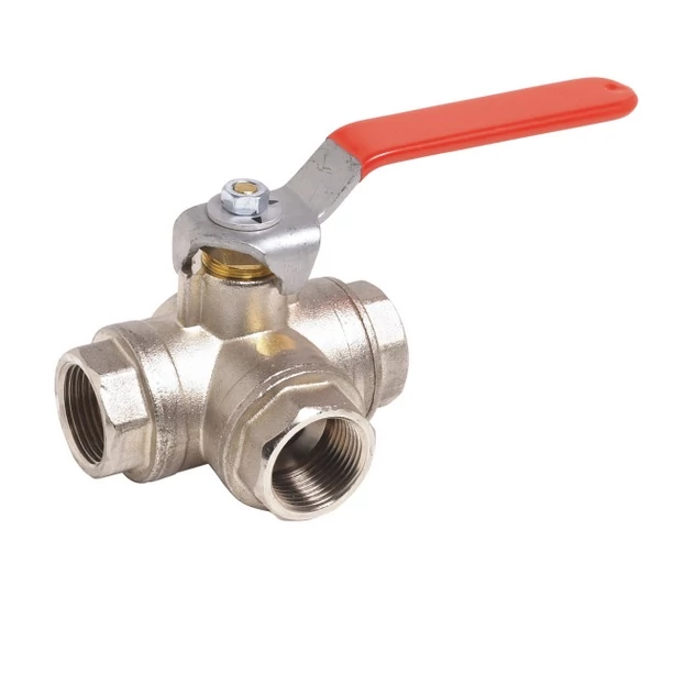 513 - 3-járatú L-forgó sárgaréz golyóscsap, Hőm.: -10/+100°C, PN16, (fűtés, hűtés, vízkezelés)